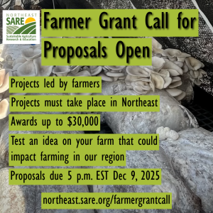The Northeast SARE Farmer Grant program provides funds to farmers to explore innovative concepts in sustainable agriculture conducted through experiments, surveys, prototypes, on-farm demonstrations or other research and education techniques.